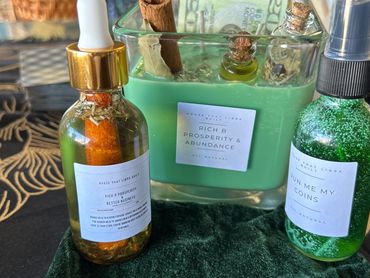 We offer a wide range of products to support your spiritual practices, including baths, candles, oils, hoodoo items, crystals and soooo much more. All items are made in house and constructed by hand.